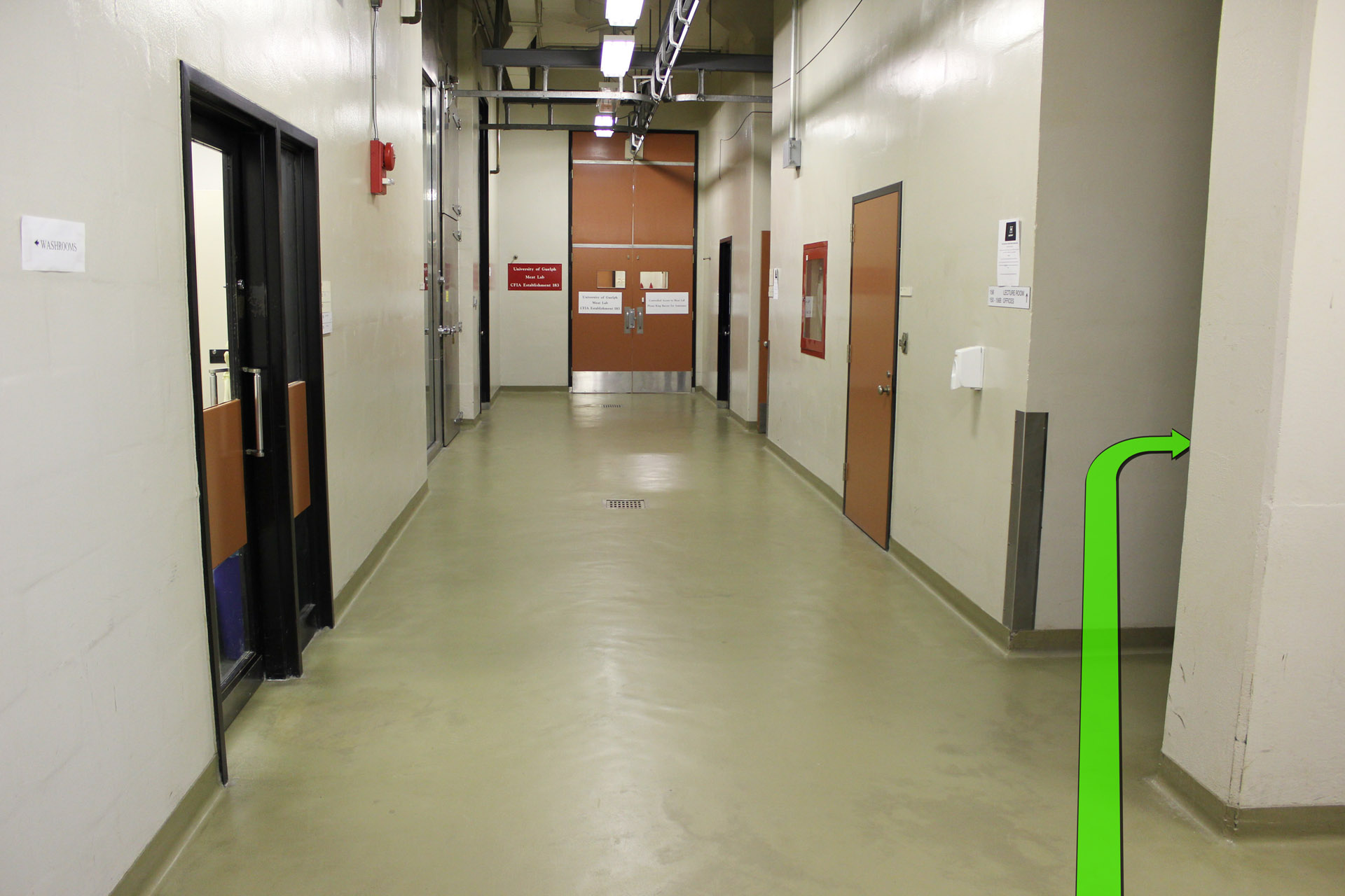 Take a left turn at the hallway doors up ahead.