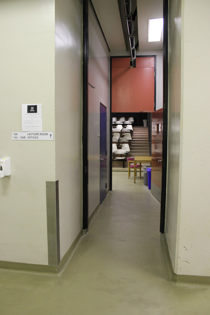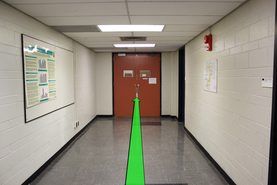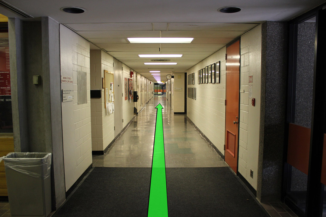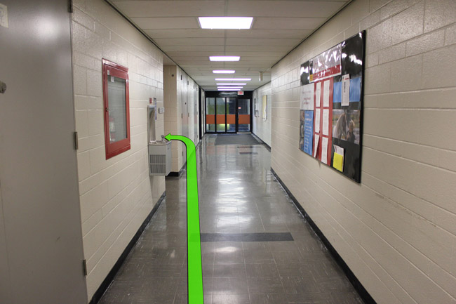 Walk down the hallway and through the next set of hallway doors