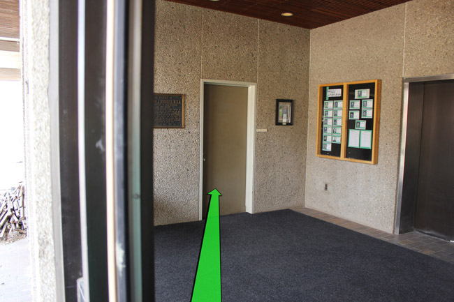 Enter the building, your room will on your left.