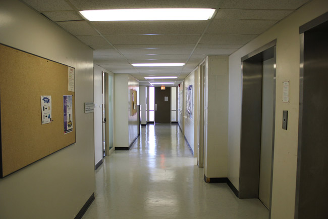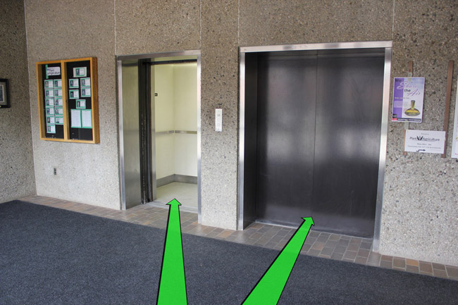 Enter the building and take the elevator to the 4th Floor.
