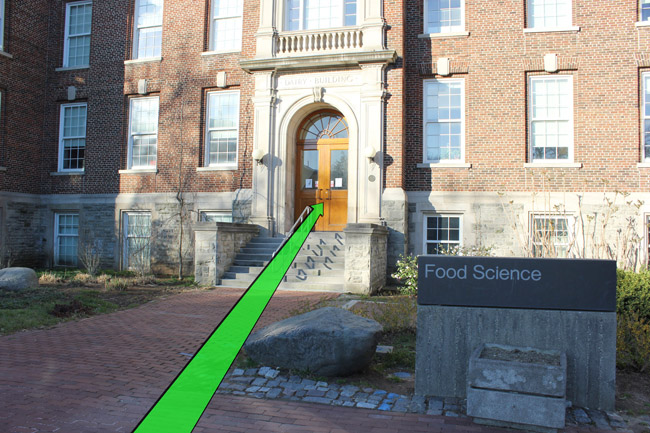 Walk up the stairs to the Food Science building entrance.