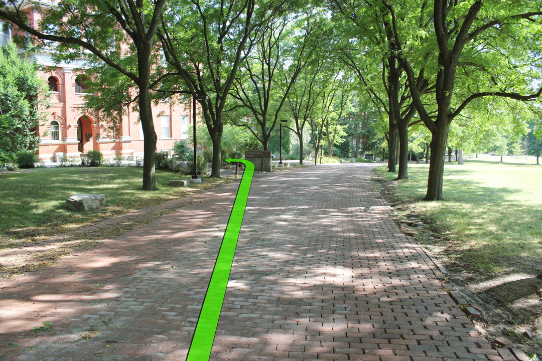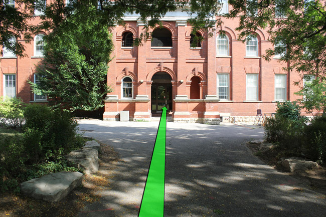 Keep walking and take a left turn at the Maclachlan building up ahead.