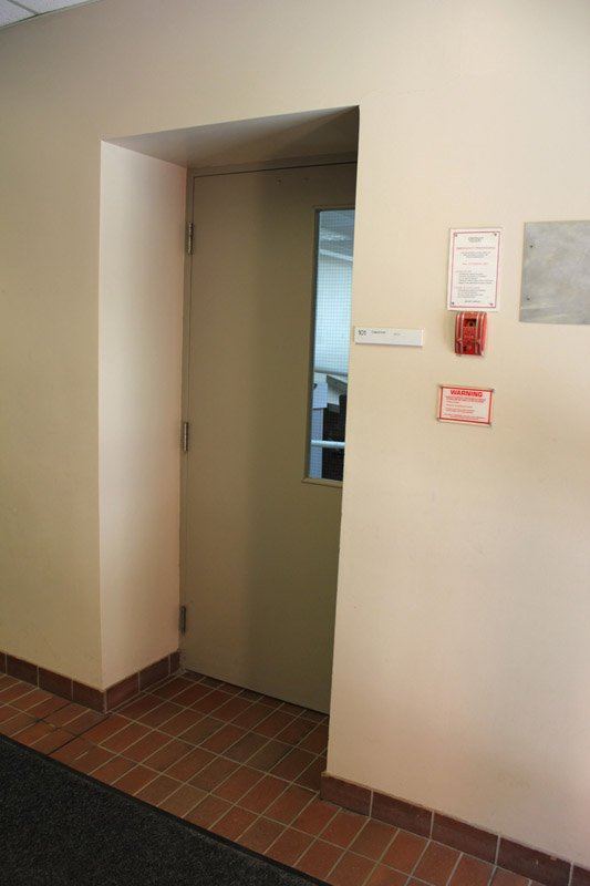 Walk straight towards the entrance doors and enter the building. On entering the building your room will be the first room on the right.