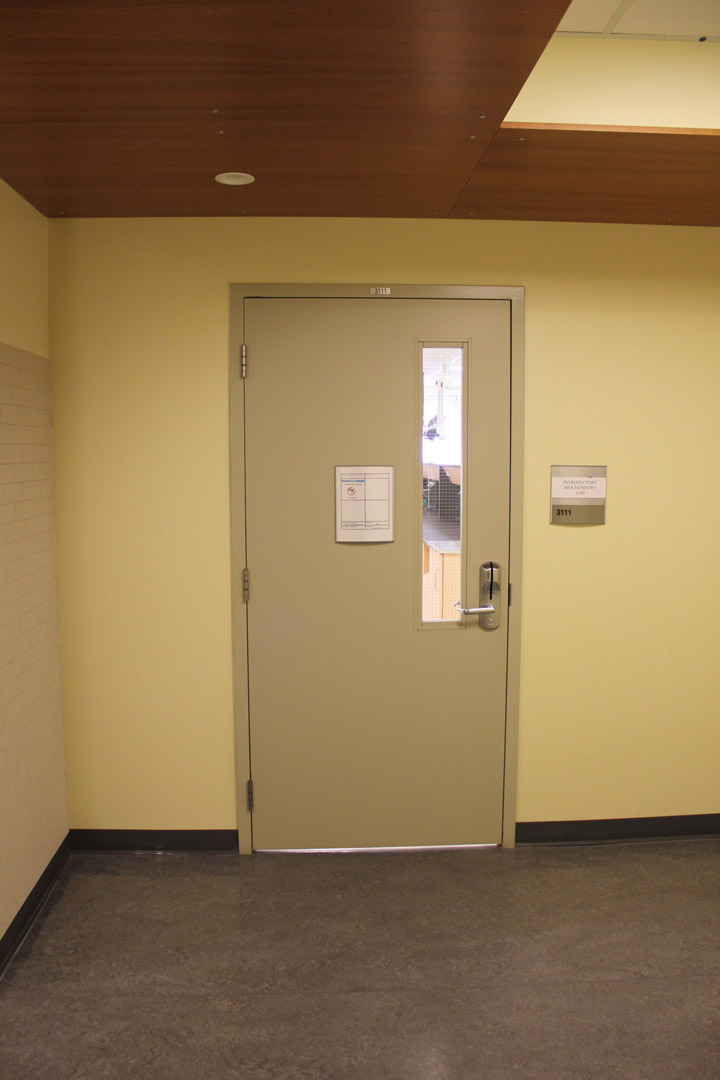Walk toward the entrance of the Science Complex and enter the building.