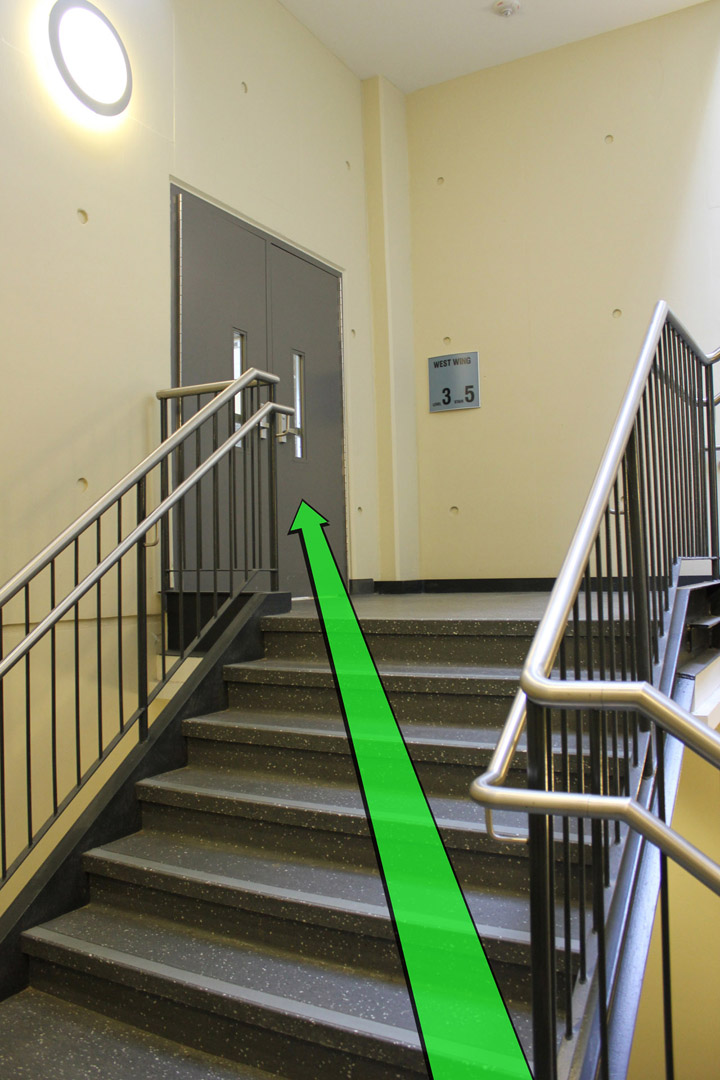 Keep walking upstairs and enter the 3rd Floor hallway.