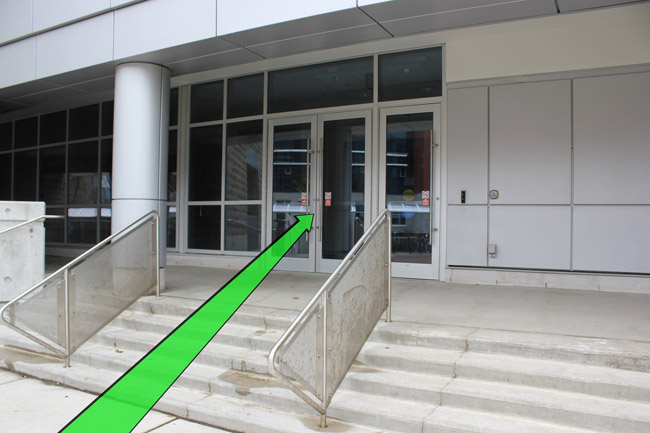 Walk toward the entrance of the Science Complex building.