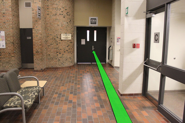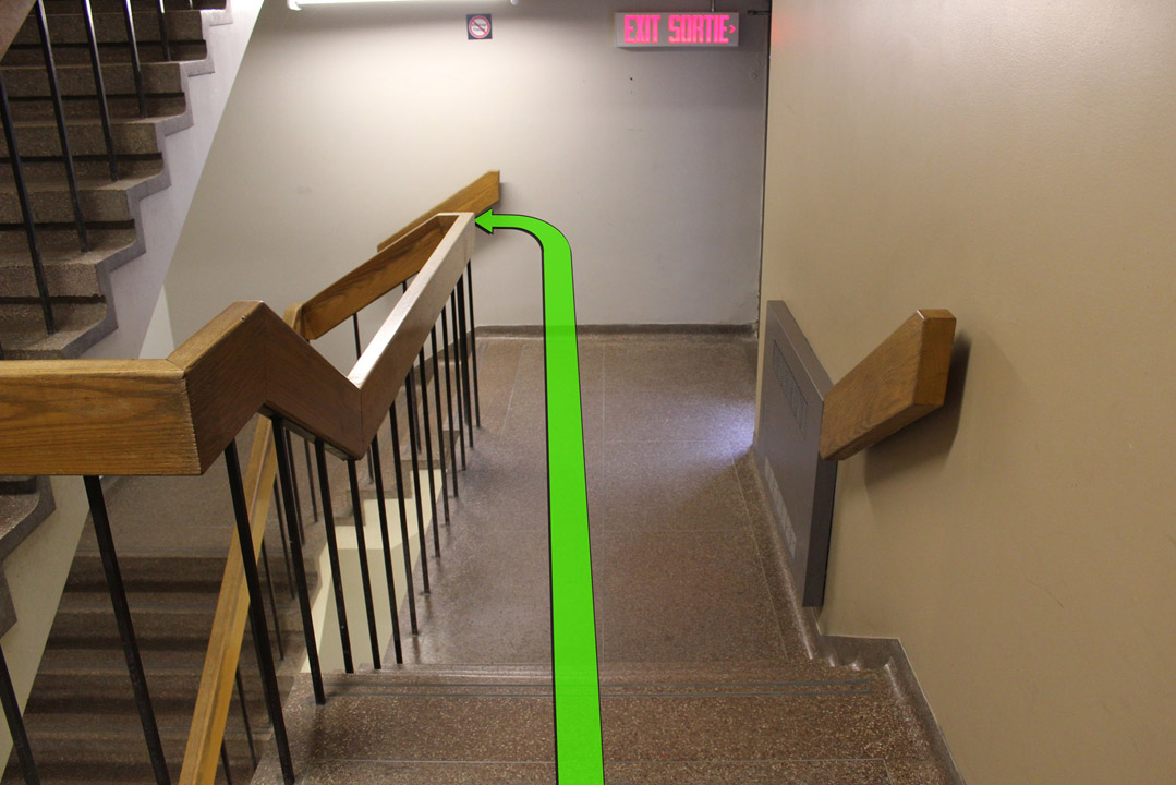Walk towards the stairway door and enter the stairway.