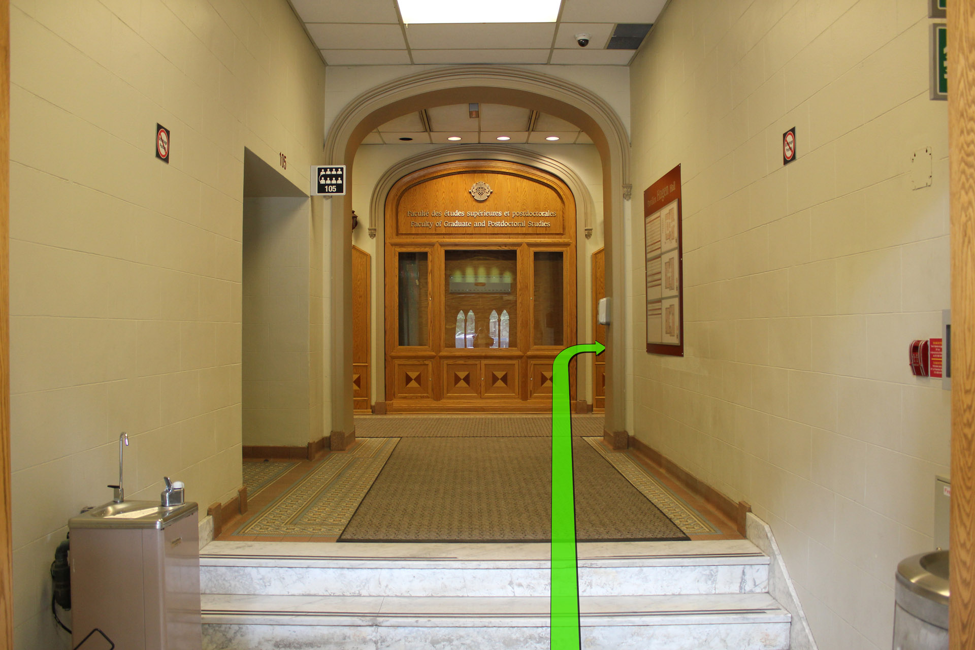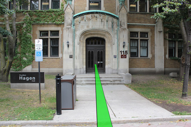 Walk from Wilbrod Street towards the entrance of Hagen Hall.