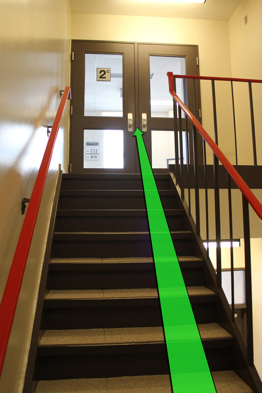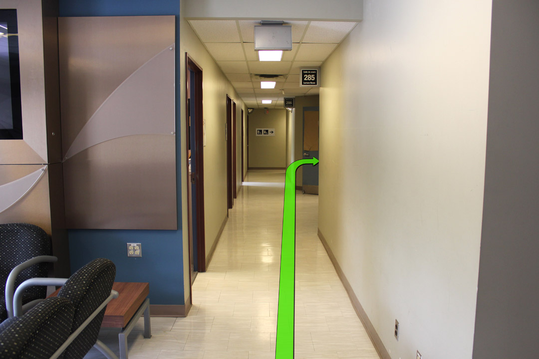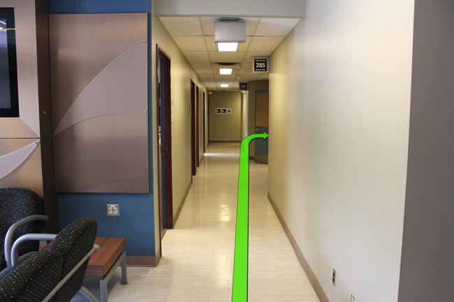 Walk straight towards the hallway doors on your left and enter the hallway.