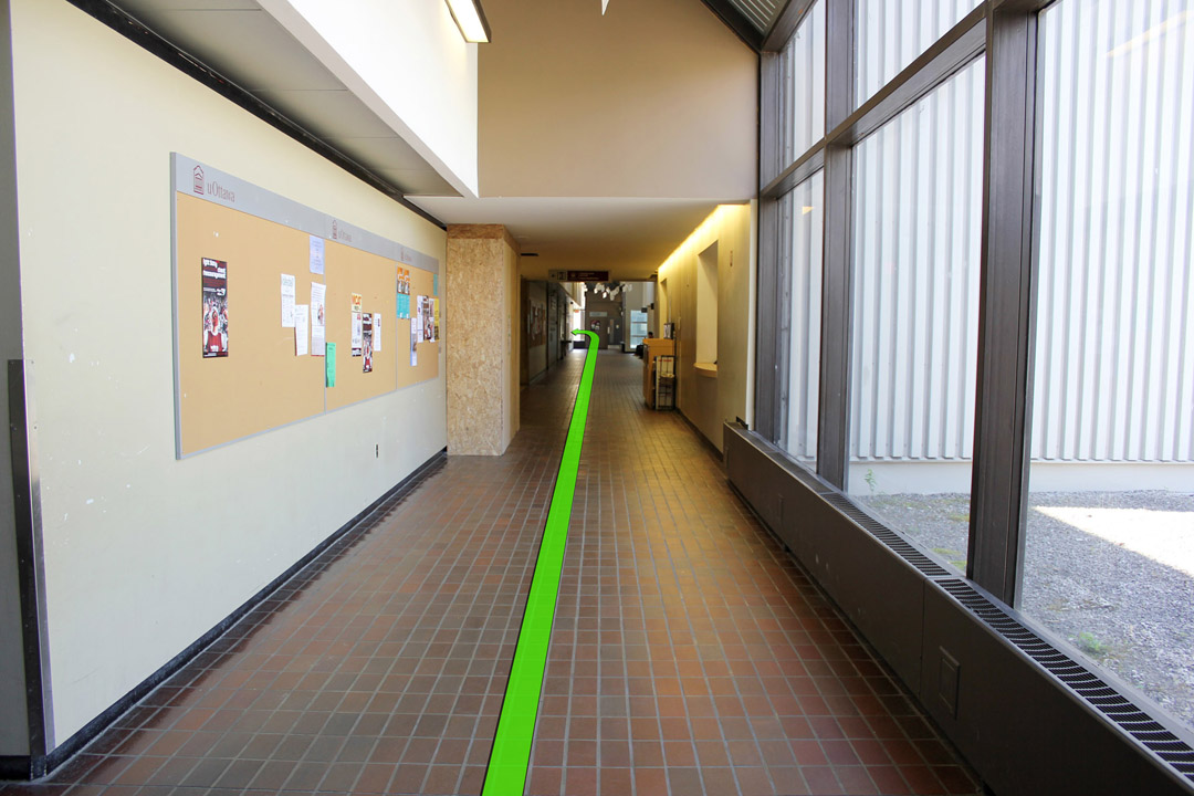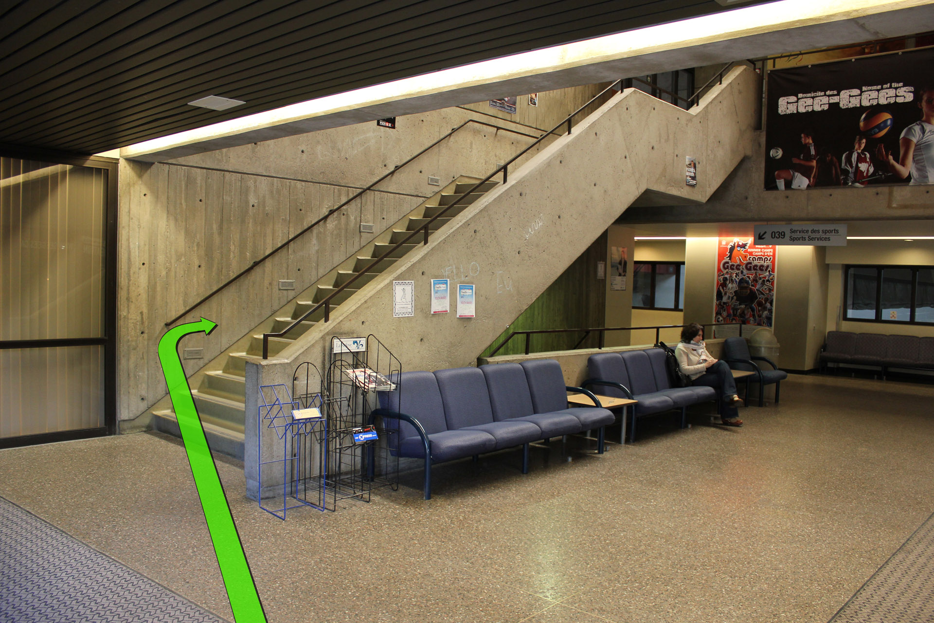 Starting from Univeristy Private, walk up the steps and take a right turn towards the entrance of Montpetit Hall.