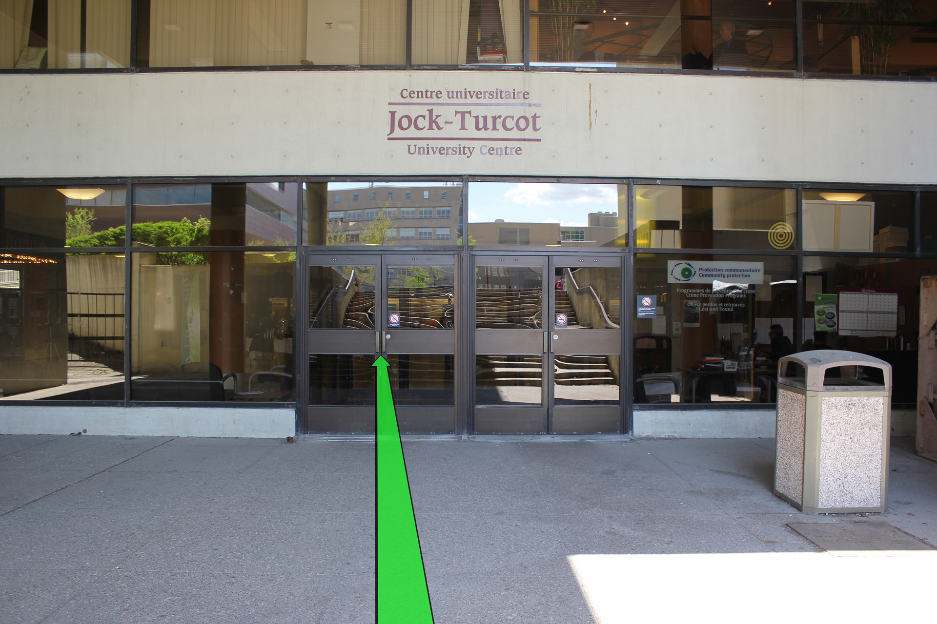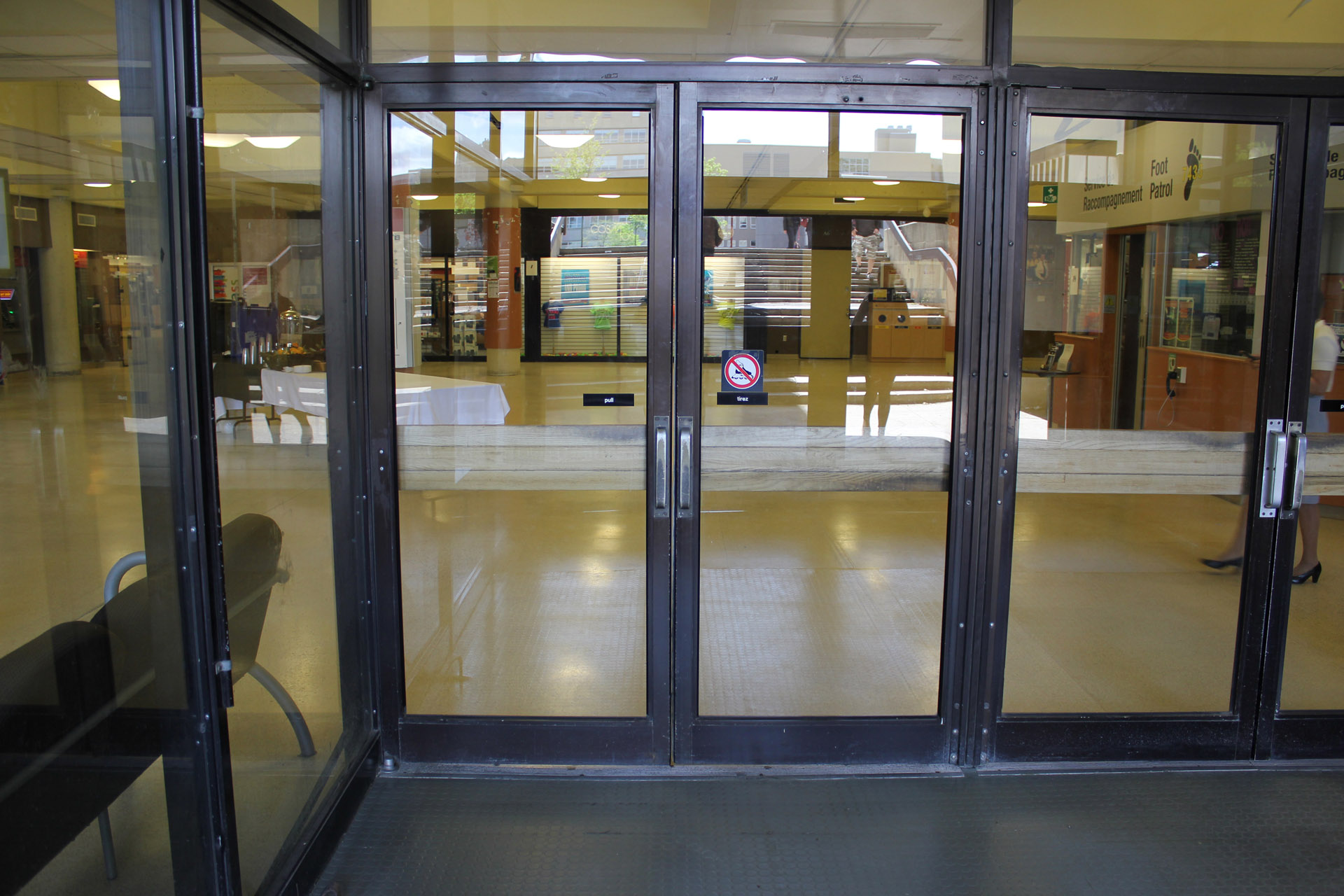 Walk towards the set of doors and enter the bulding.