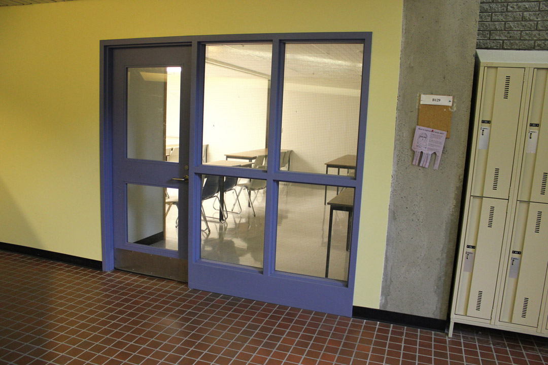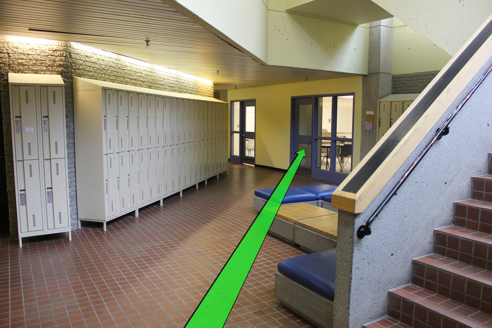 Walk down the staircase. At the bottom of the staircase take a right turn.