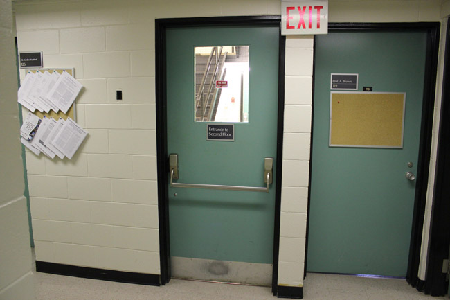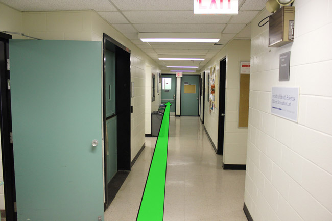 Walk to 2nd floor hallway door and enter the hallway.