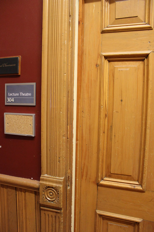 Walk from the street to the entrance of Goodes Hall. Enter the building.