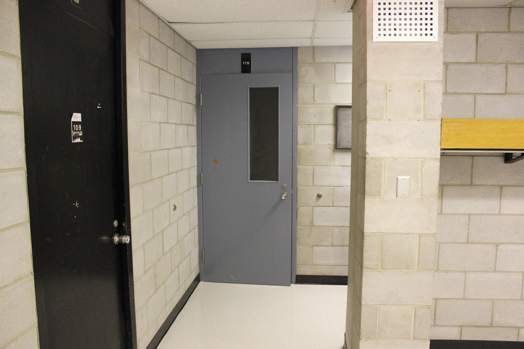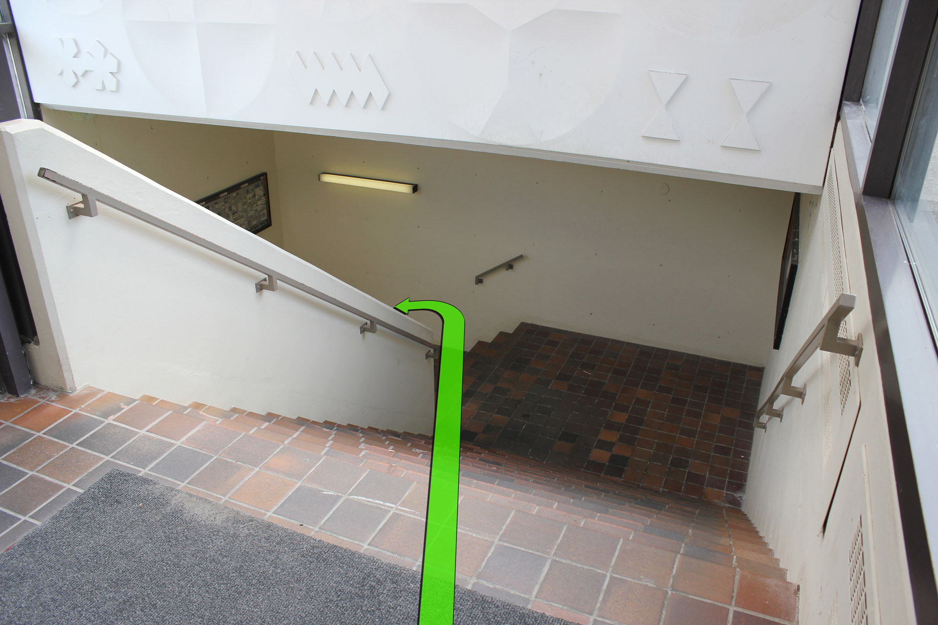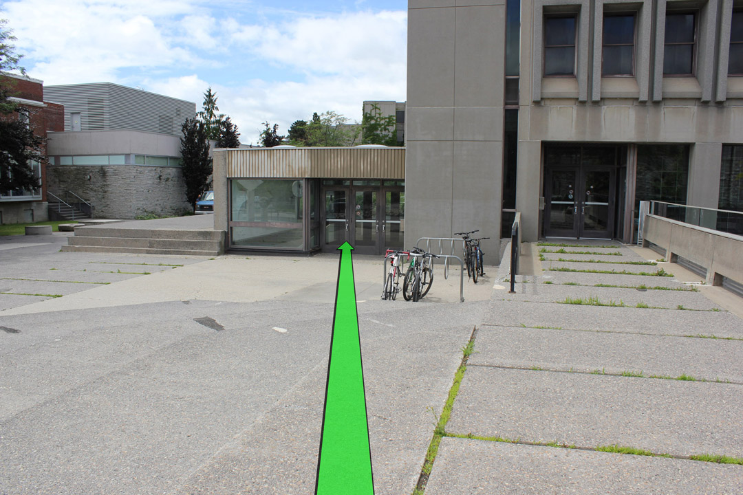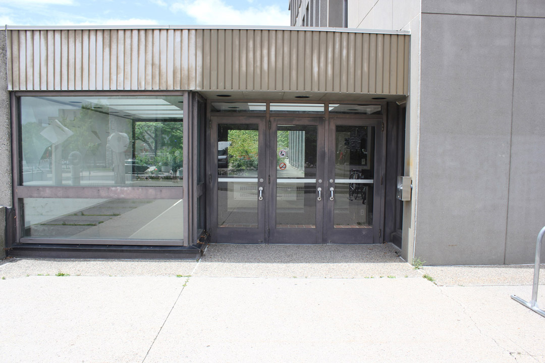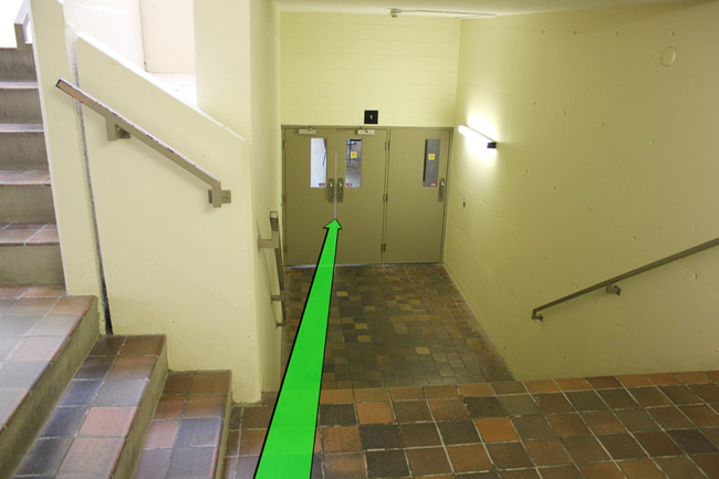 Walk from the street to the entrance of Jeffrey Hall on the far left.