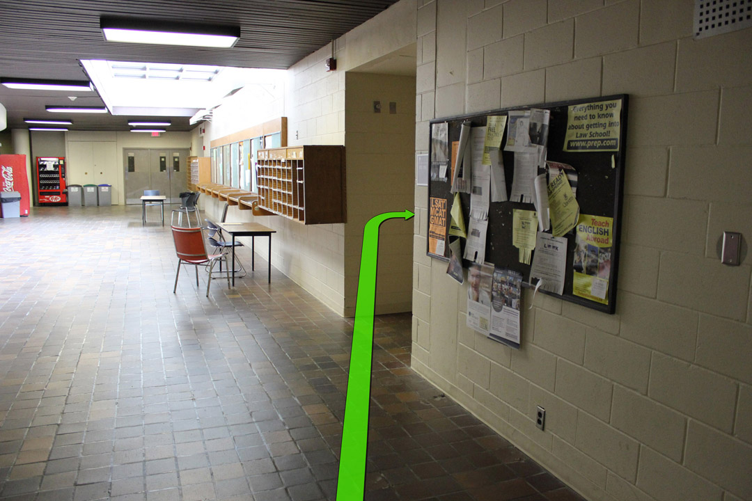 On entering the hallway, walk towards the first hallway on your right and enter the hallway.