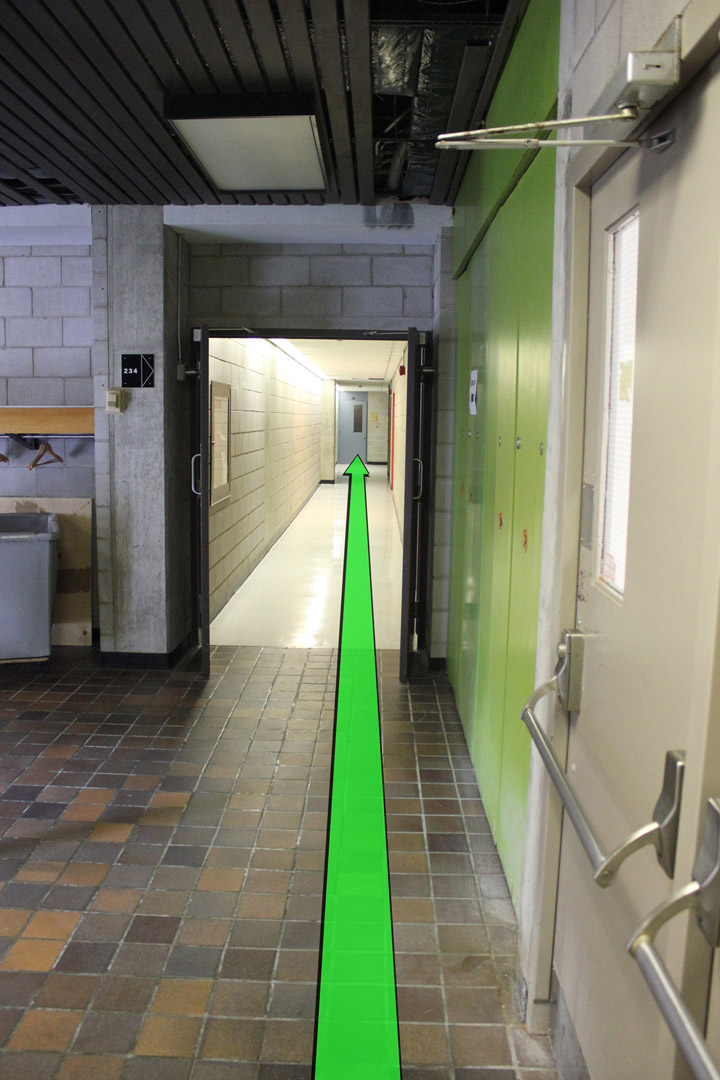 On entering the hallway, walk down the hallway on your right. Your room will be up ahead.
