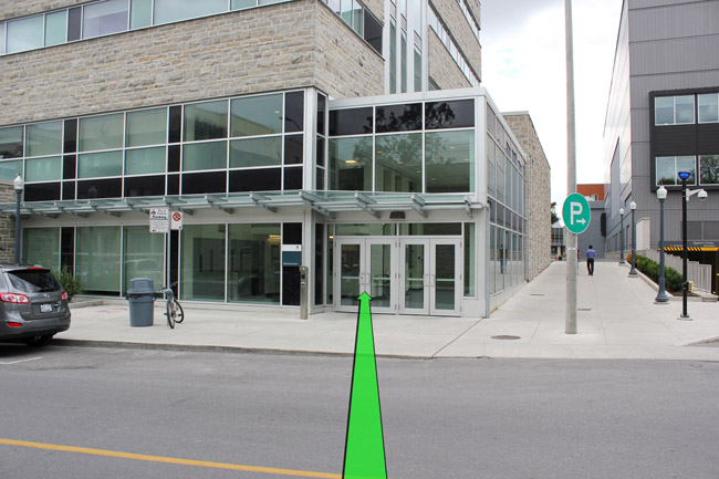 Walk from the street to the School of Kinesiology entrance. Enter the building.