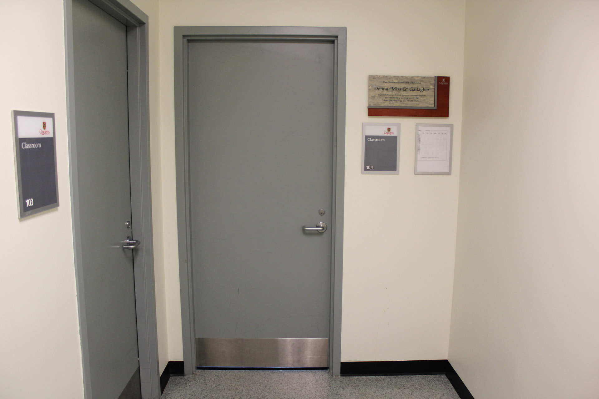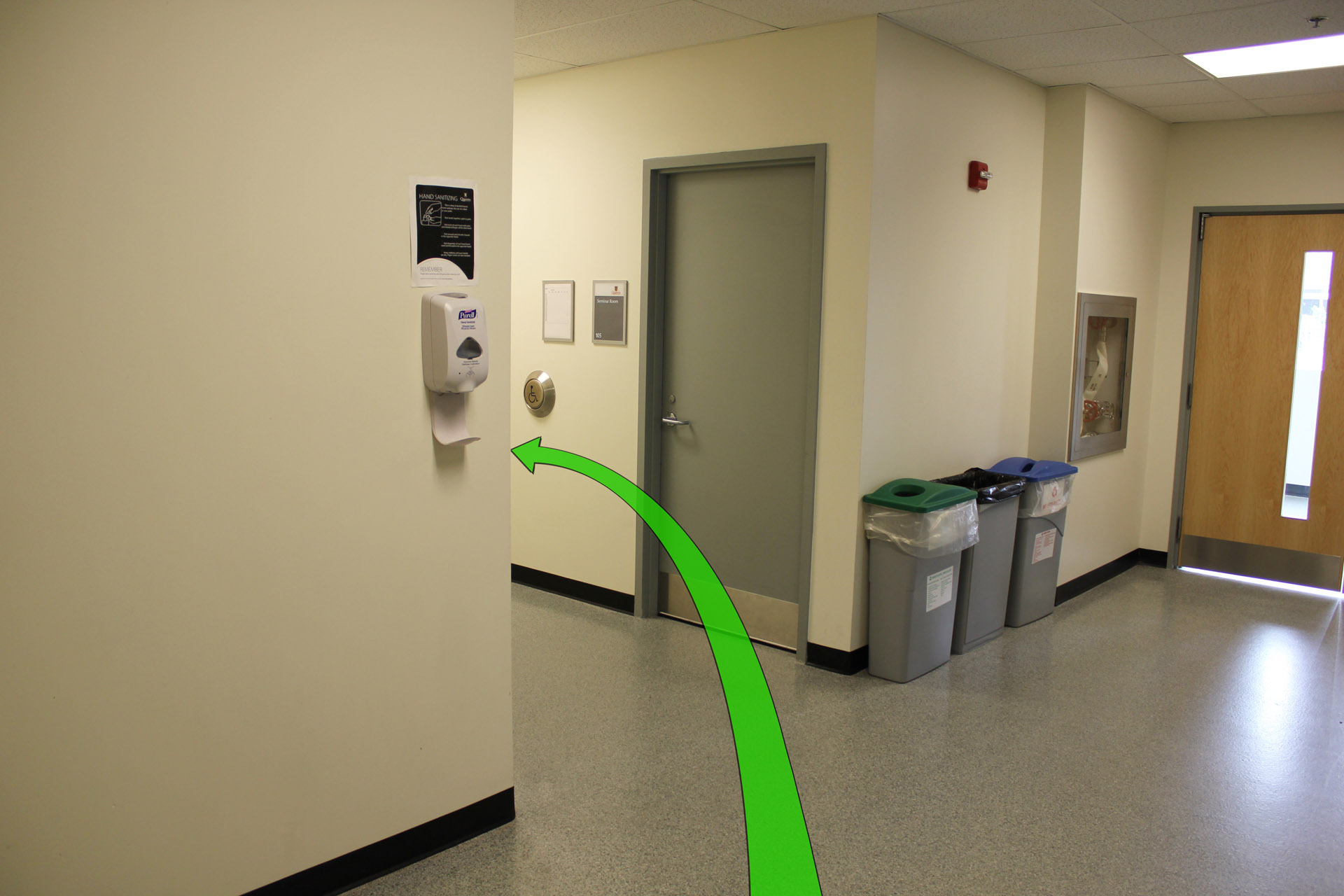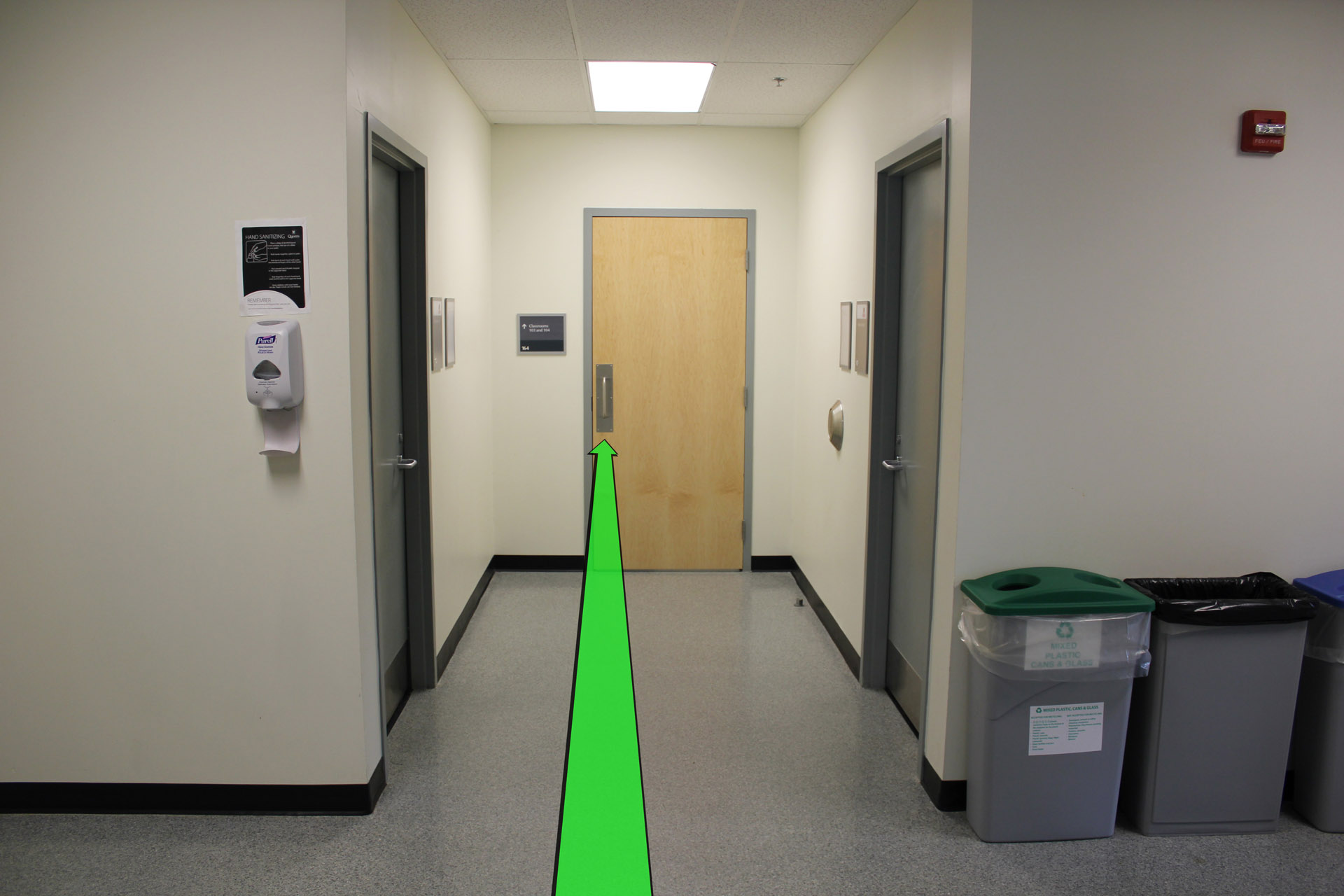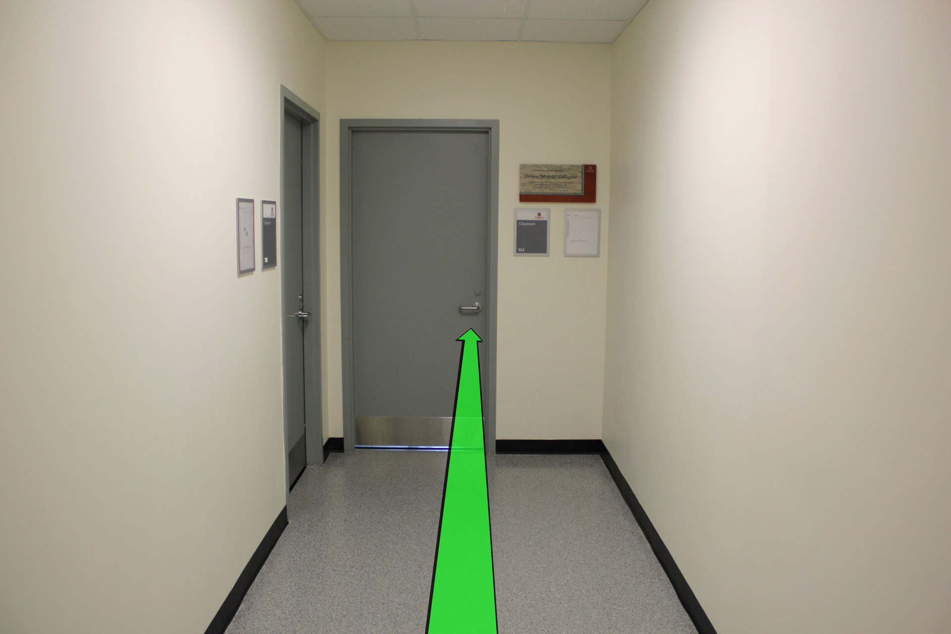 On entering the building walk towards the doors on your left. Enter the hallway.