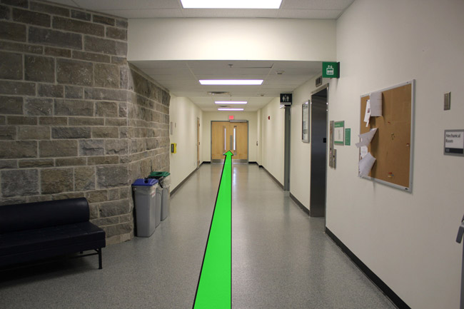 Walk from the street to the School of Kinesiology entrance. Enter the building.