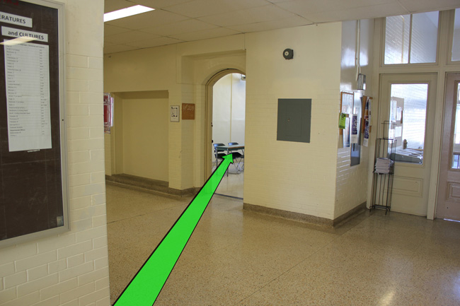 Walk straight ahead to your room on the left.