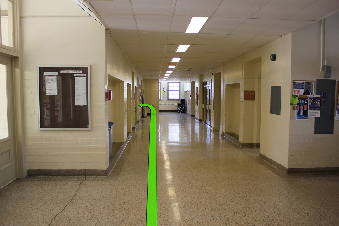 Walk from University Avenue down the pathway towards Kingston Hall up on the left.