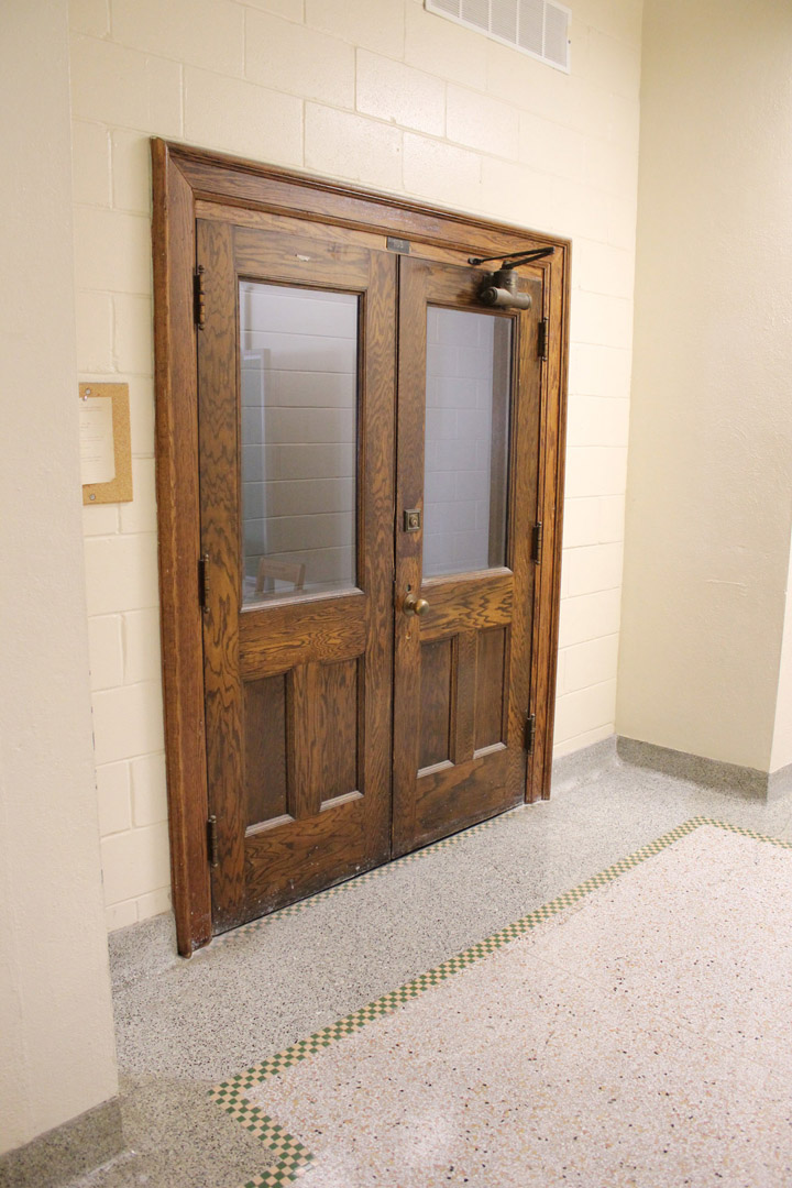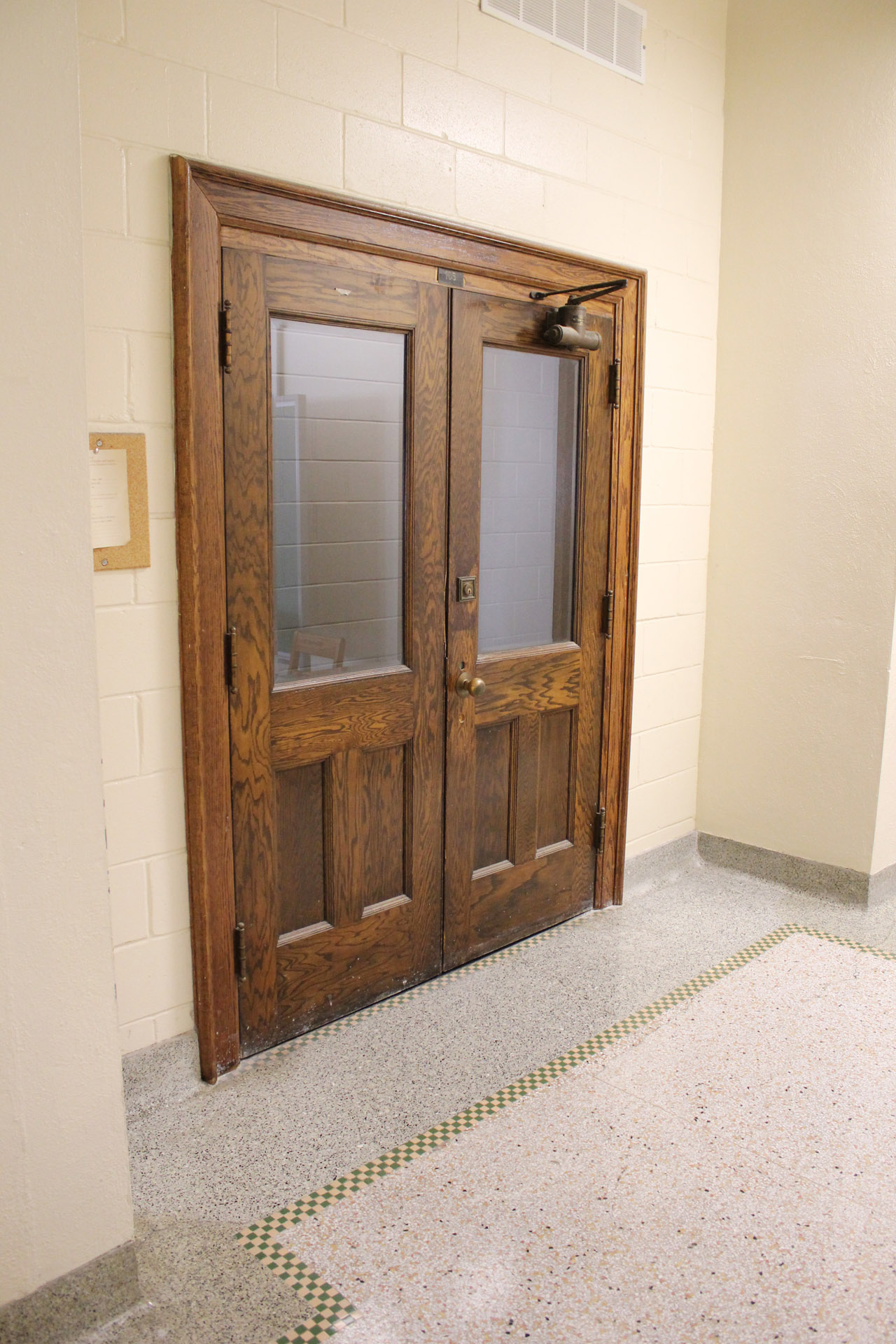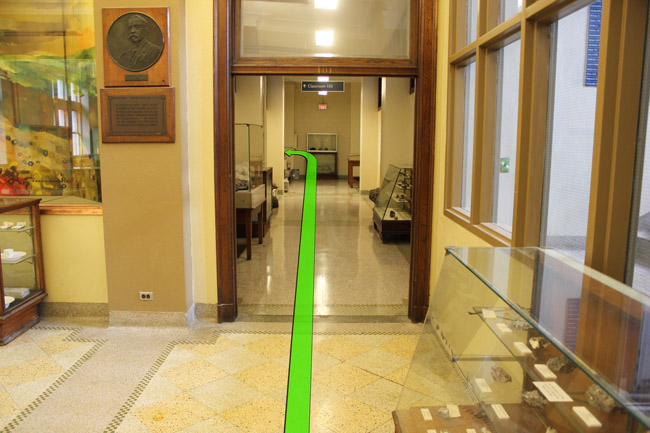 On entering the building walk straight toward the hallway on your left.