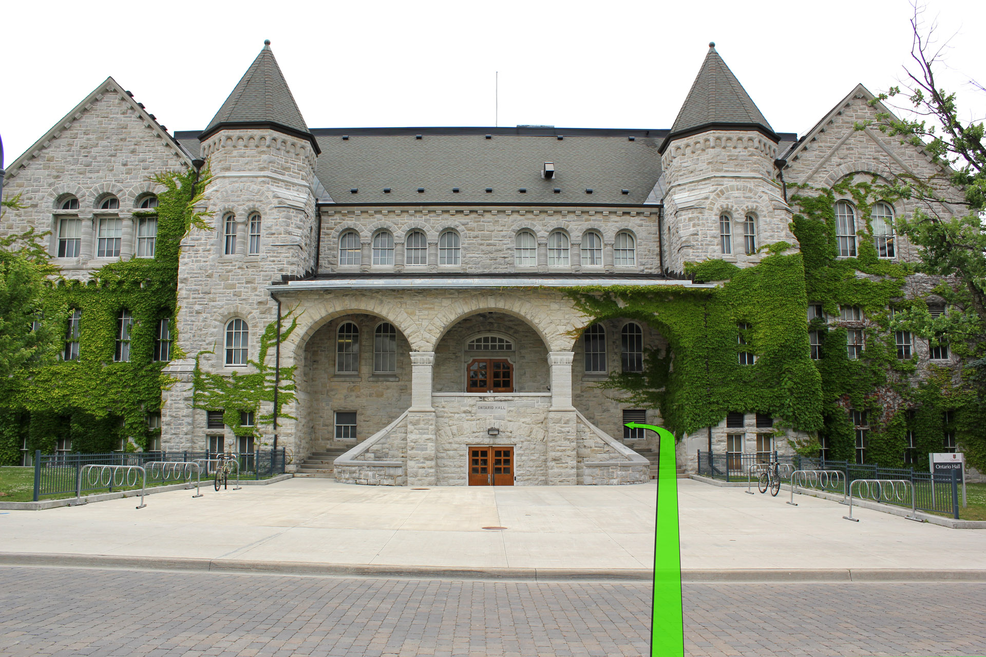 Walk from the street to the entrance of Ontario Hall.
