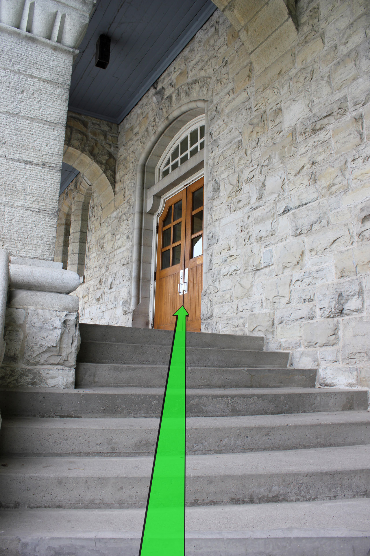 Walk up the steps and enter the building.