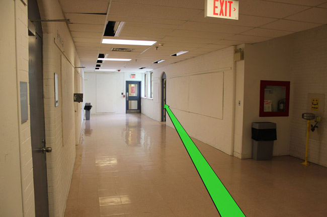 On entering the building walk down the hallway on your right. Your room will be up on the right.