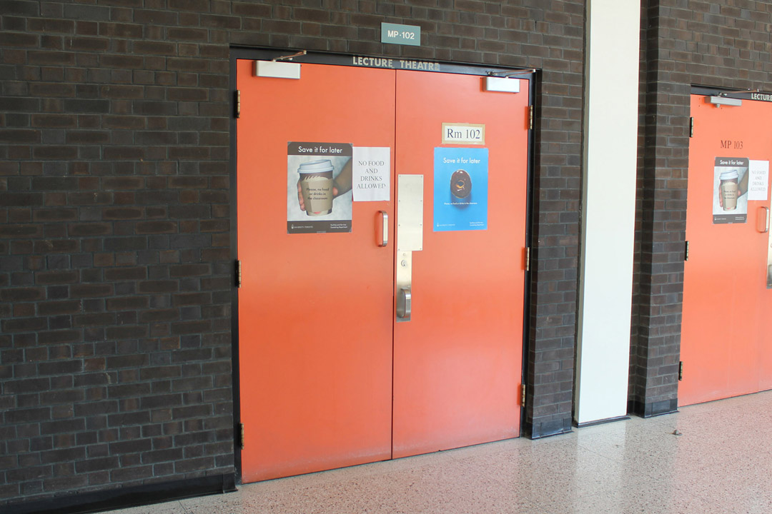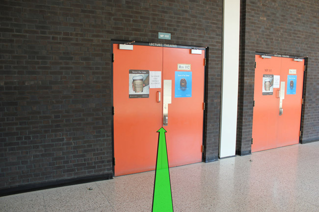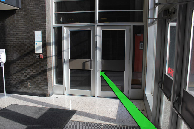 On entering the building walk towards the hallway doors on your right and enter the hallway.