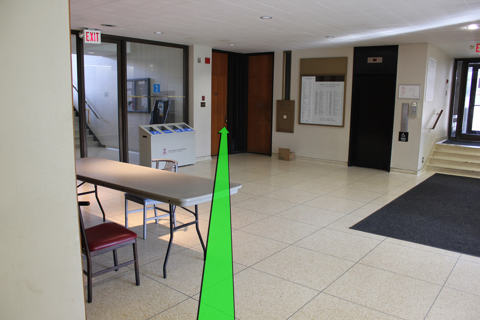 On entering the building walk straight and take a left turn at the hallway up ahead.