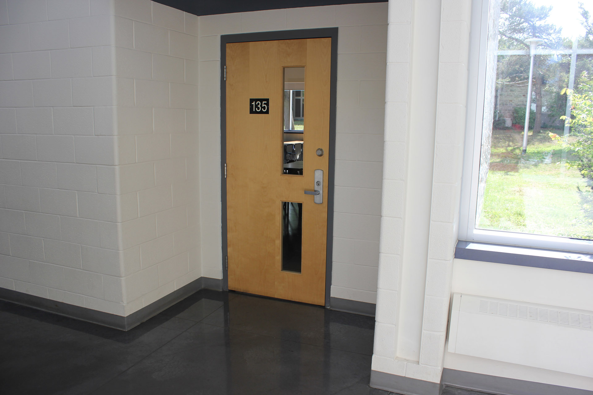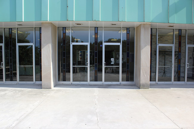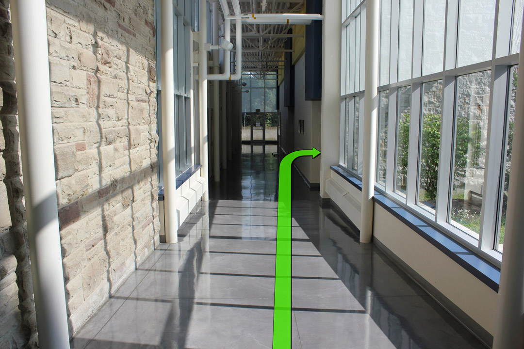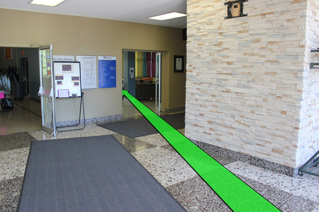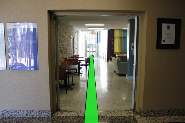 Walk from the parking lot towards the entrance of the Mother St. James Building.