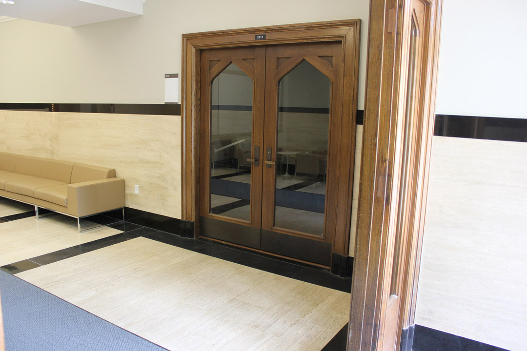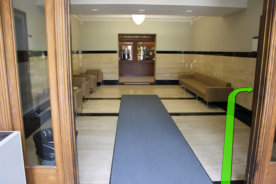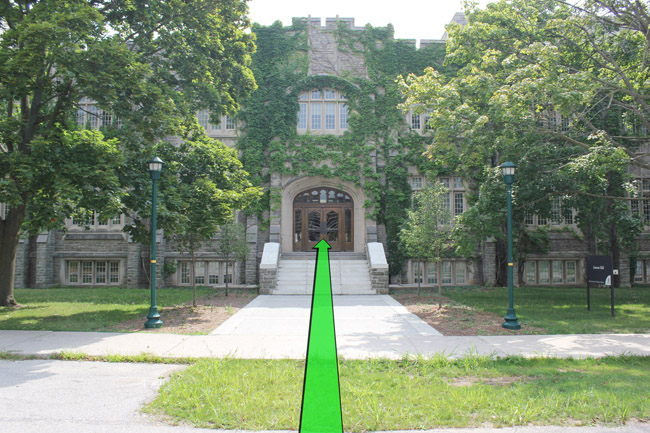 Walk from Oxford Dr. to the entrance of Lawson Hall.