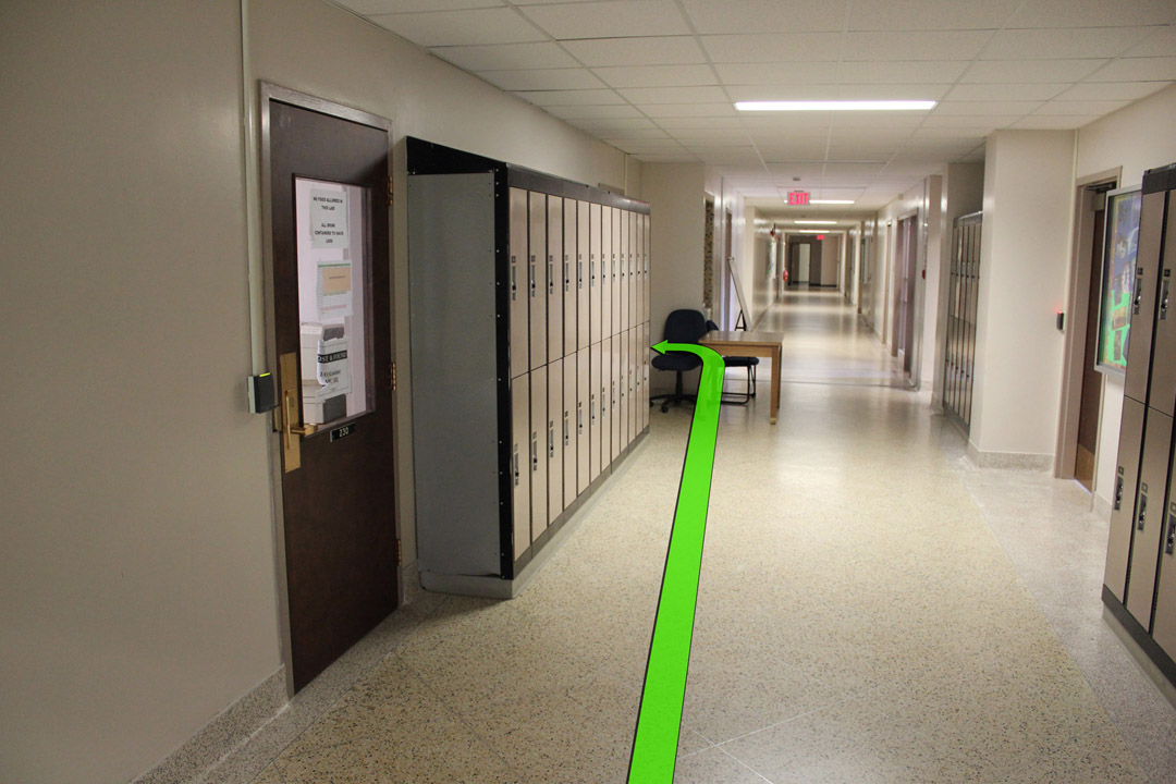 Walk toward the main entrance of the Bioscience Complex. Enter the building.
