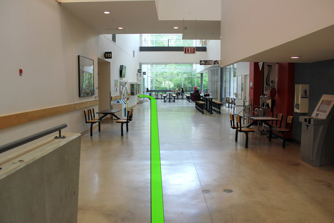 Walk from Perth Dr. to the entrance of the North Campus Building.
