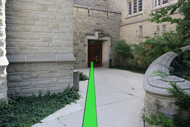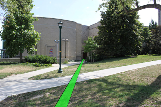 Walk from Lambton Dr. to the entrance of the Spencer Engineering Building.