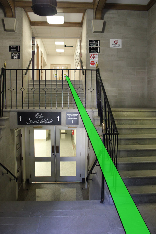 Walk from Oxford Dr. to the entrance of Somerville House. Enter the building.