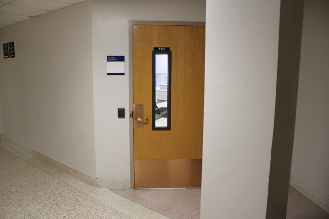 Walk from Oxford Dr. to the entrance of Somerville House. Enter the building.
