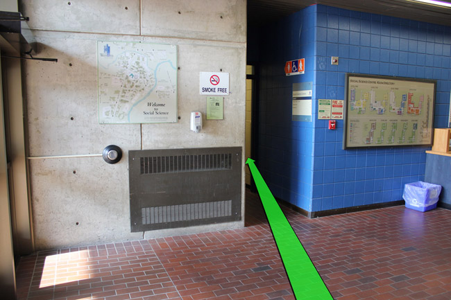 Walk from Oxford Dr. to the entrance of the Social Sciencer Centre.