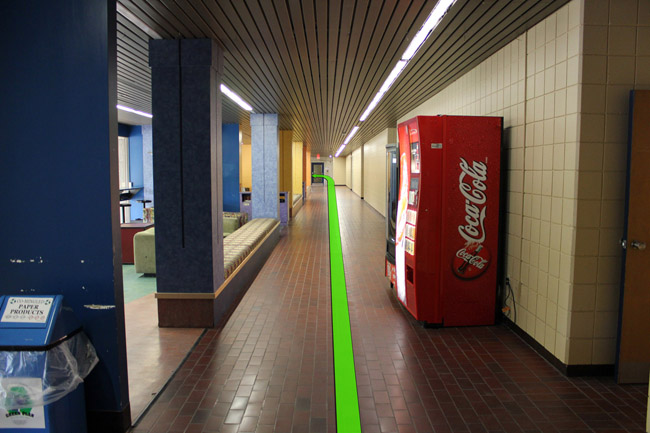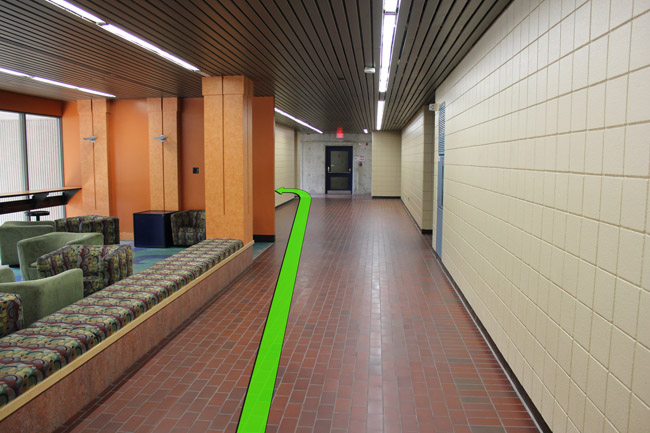 Continue walking straight and take a left turn toward your room around the corner up ahead.