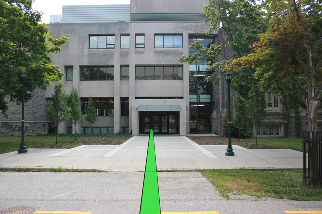 Walk from Oxford Dr. to the entrance of Stevenson Hall.