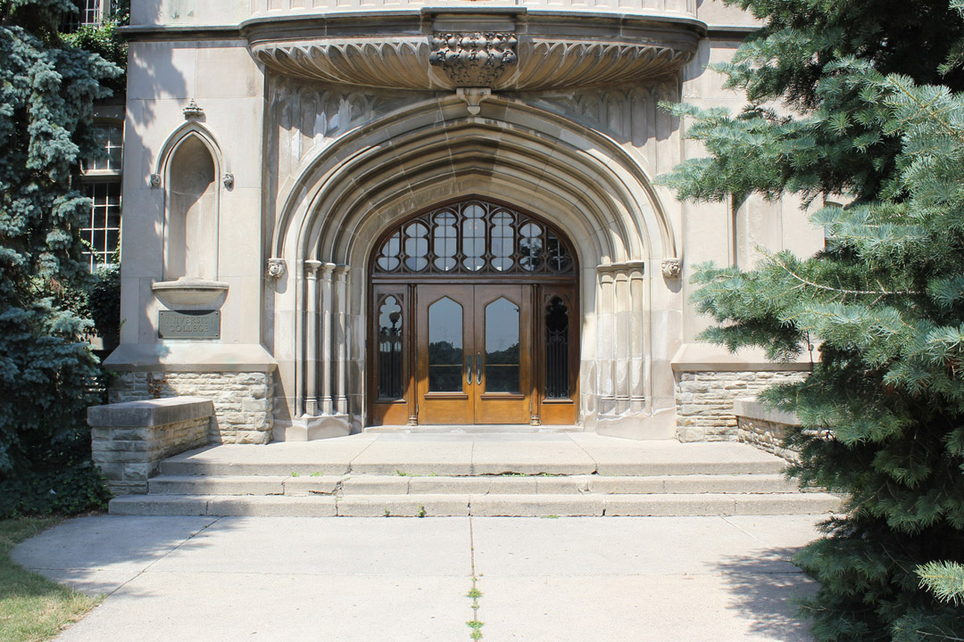 Walk to the front entrance of University College.