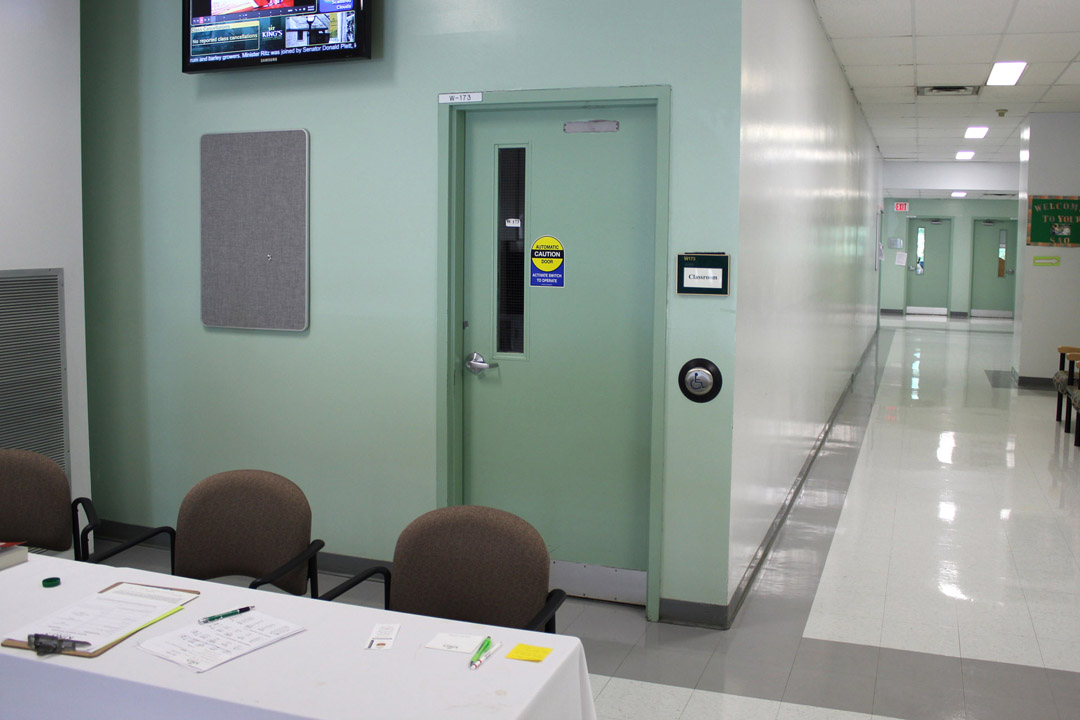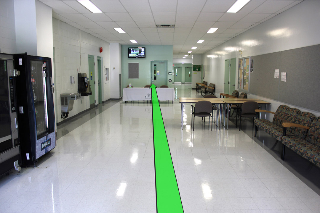 Walk straight through the next set of hallway doors.