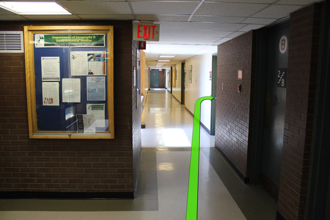 Walk downstairs to the 2nd floor door and enter the hallway.