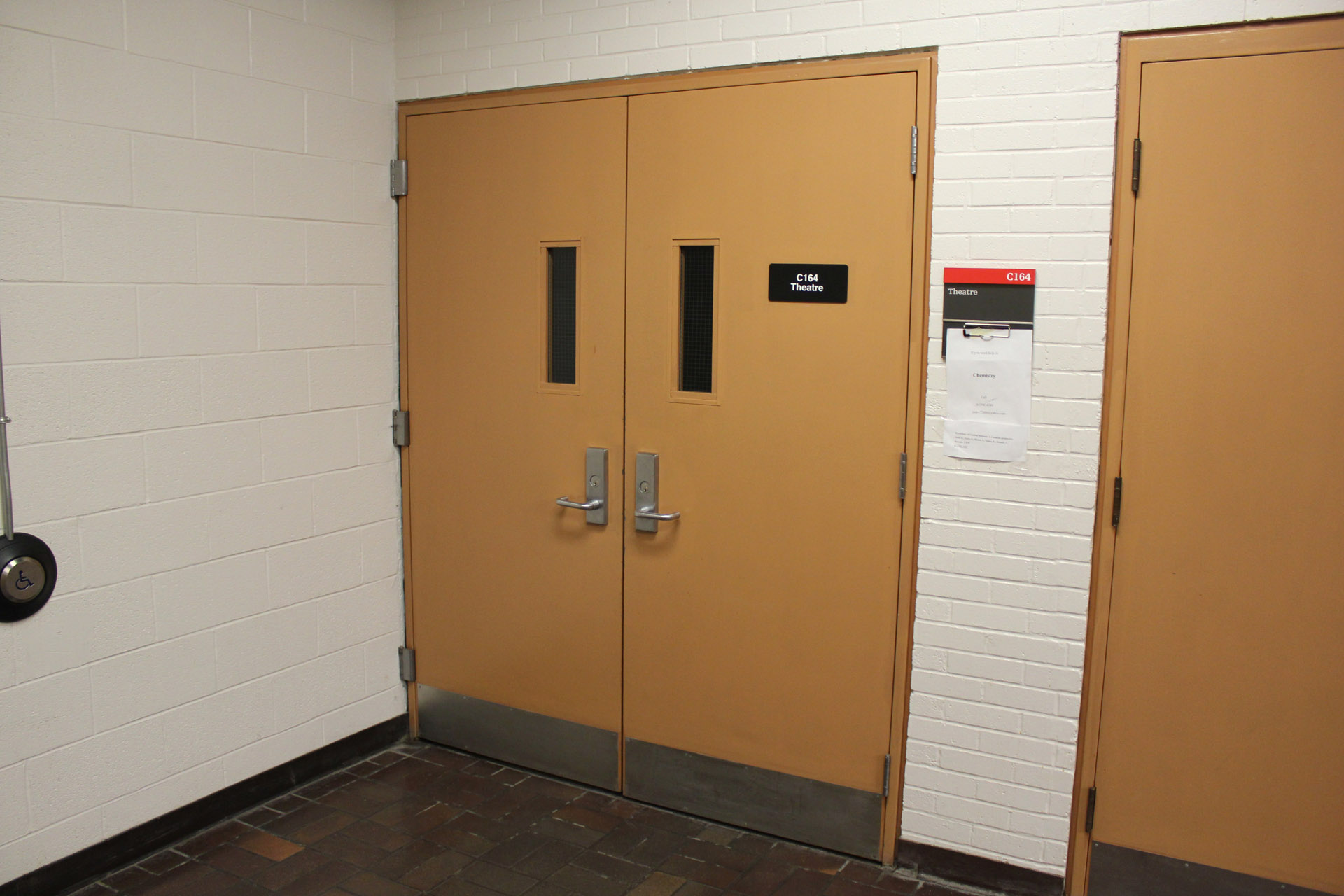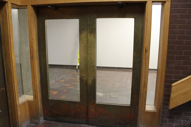 Walk to the entrance doors of the building.