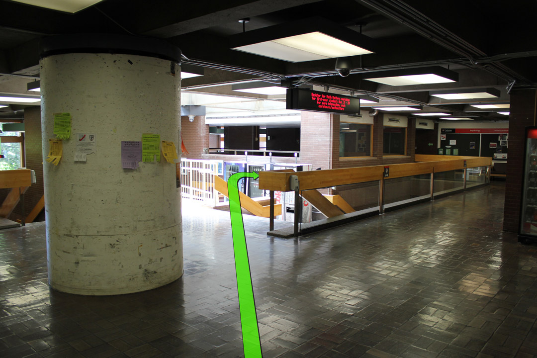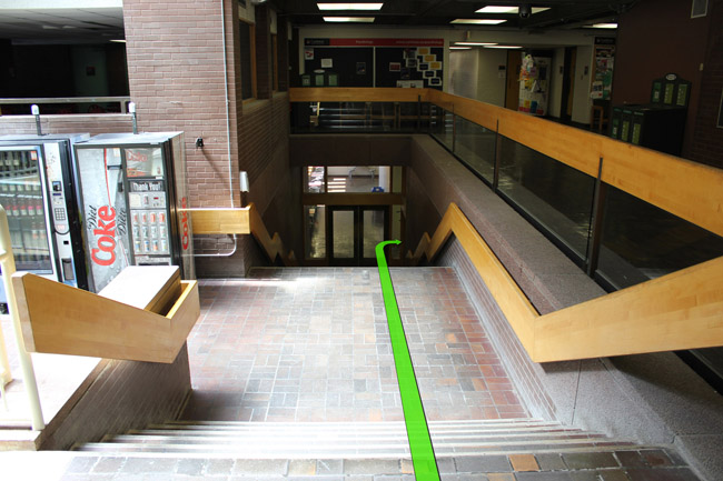 Walk downstairs to the 1st floor and take a right turn at the set of hallway doors.