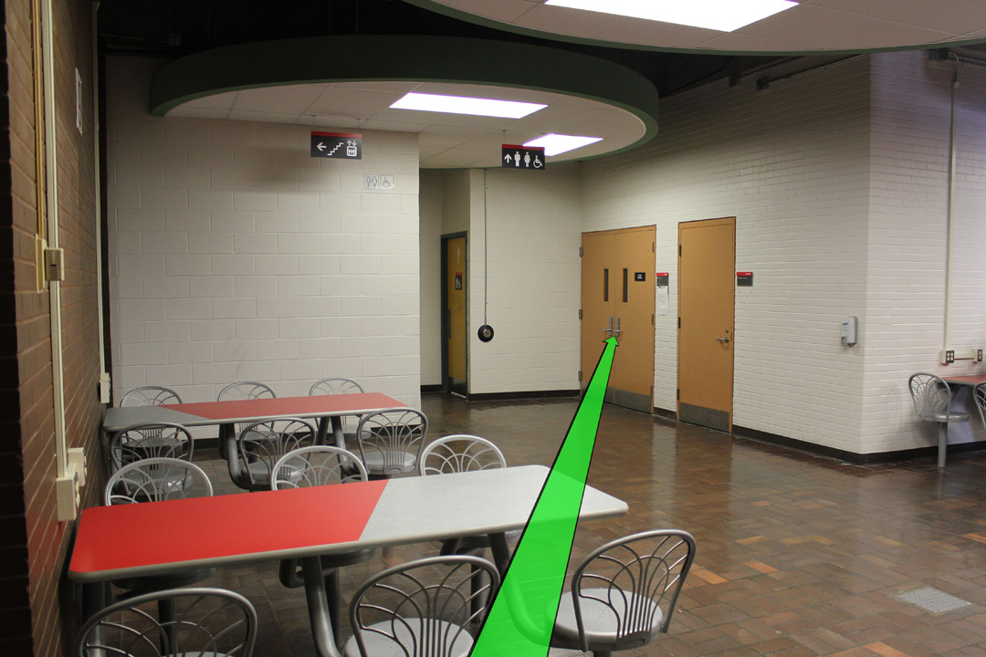 Walk downstairs to the 2nd floor door and enter the hallway.