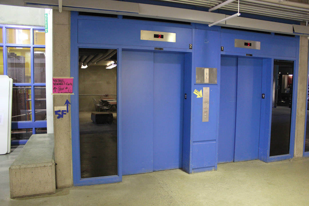 Take the elevator to the 5th floor.