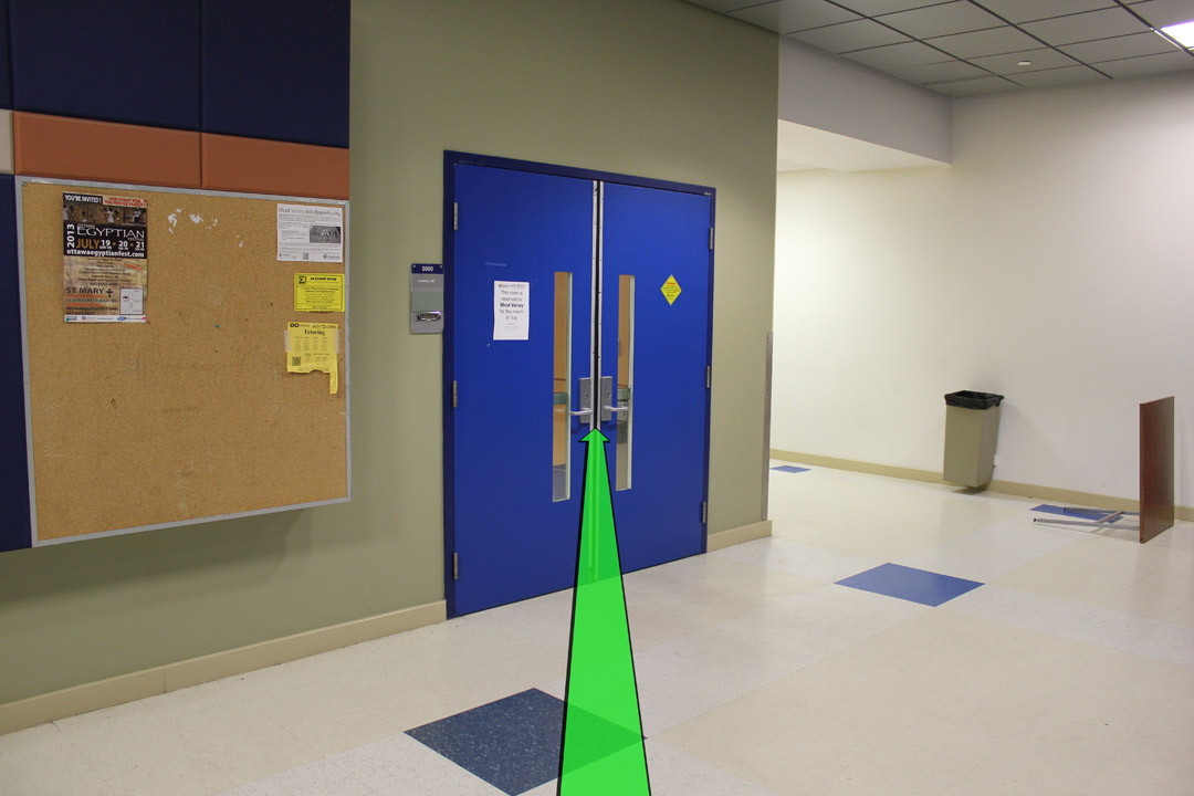 Walk straight towards your room on the right.